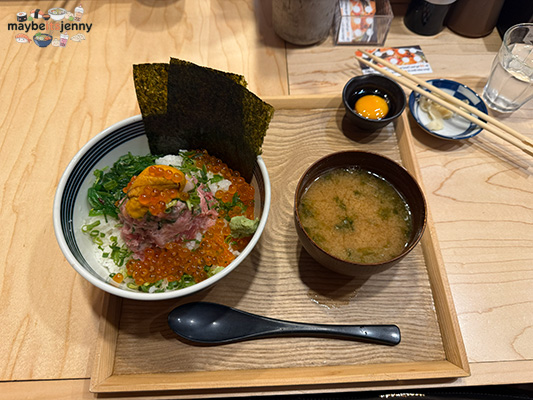 This was my bowl. Ooh…it’s a lot of food! I liked it the first few bites and then it was just…too much? Too much rice? Too much stuff. I think since it negitoro – it’s also very mushy. We also added the shoyu egg yolk and well, that’s just triple mush lol. It just becomes a bit too much at the end. It was good but nothing I would return for. I think I’d rather go to a sushi restaurant and eat sushi by the piece! If you love negitoro and rice bowls, please have at it!