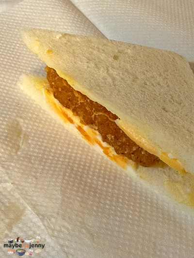 Here we go! So how was it? Well it tasted like an egg salad sandwich stuffed with awesome chicken patty. No complaints here man, what did you think would happen when you combine to ono things together? Yum!