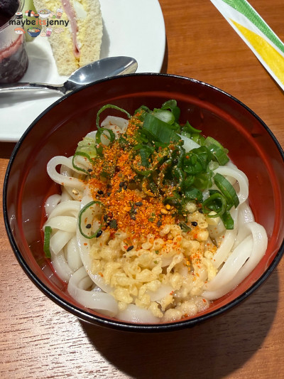 They have the noodles at the bar ready to scoop into your bowl, you can choose either hot broth or cold broth. These are the only toppings, no protein. It was okay, nothing special.