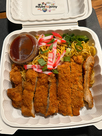 Chan’s order for dinner, gotta be honest – they could be a little more generous with the amount of noodles to give. Noodles are cheap! It should have been chicken katsu on a BED of noodles! Anyway, the noodles tasted fine – nothing special. The chicken katsu is good, fried crisp and they have a good katsu sauce.