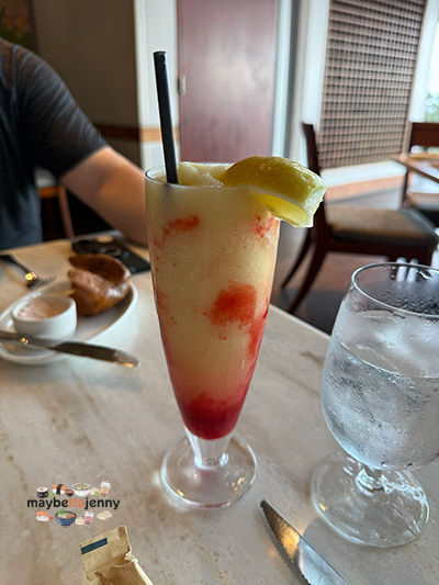 Yum! Chan and I both went non-alcoholic for this dinner. A virgin lava flow is always gonna be winners and it was. Chan said his punch wasn’t very punch-y, just tasted like plain orange juice. *shrug*