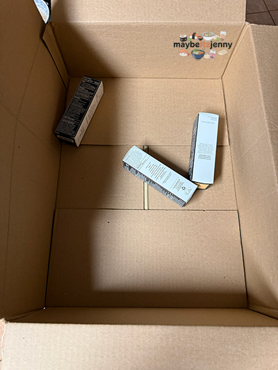 A familiar sight. Amazon package during the month of December. I ordered three of my moisturizers but they certainly would not fit in this box. Could this be the box of my previous shipment that went missing? That would explain the size…
