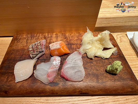 The usual Himalayan salt block with the sashimi slices for the night. I forget each sashimi but the torched piece was so good!