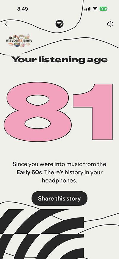 Everyone seemed to get a kick out of this when I posted it on my Instagram feed. Did I expect 81 years old? Absolutely not. I was watching people post their ages which was always in the early 20’s. LIES! What are you guys listening to! Anyway, yeah I’m an old fut who listens to old fut music. So wot? Haha, have a great weekend.